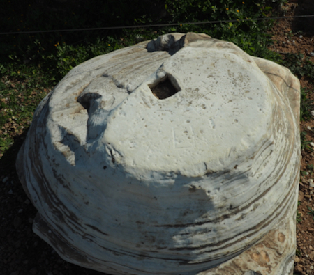 Column base with square opening for the "peg" on the column to be installed on the base