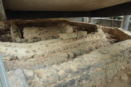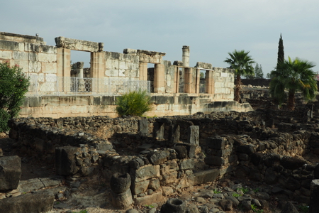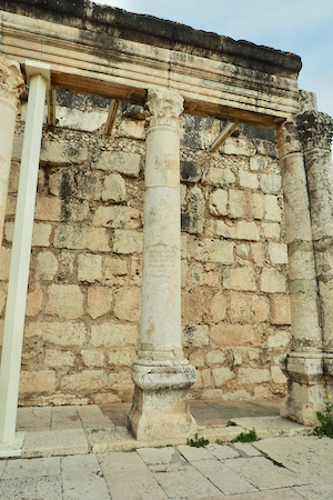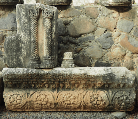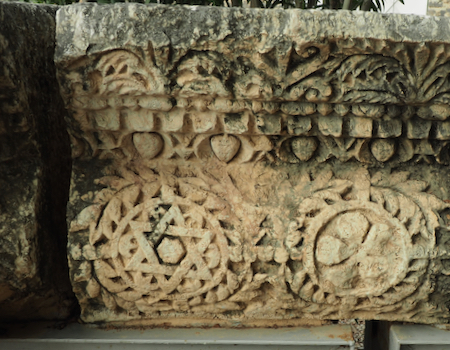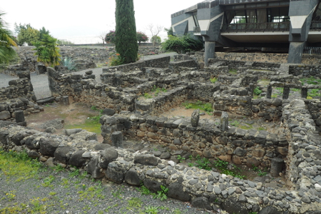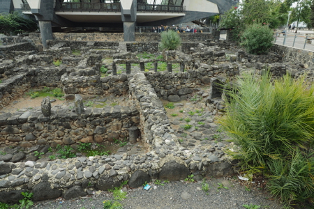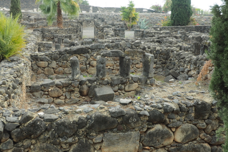 The ruins include the remains of the ancient village - houses, the synagogue, a church - and other artifacts from the time including a variety of capitals and friezes or lintels found in the area with carvings of menorah, ark of the covenant, pomegranates and grapes, 5 and 6 pointed stars, etc. The Octagonal Church has been built above the “possible” home of St. Peter. The foundations of the house are exposed.