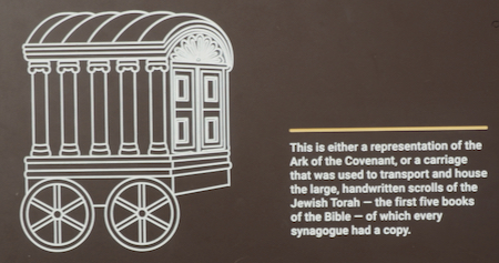 This is either a representation of the Ark of the Covenant or a carriage that was used to transport and house the large, handwritten scrolls of the Jewish Torah.