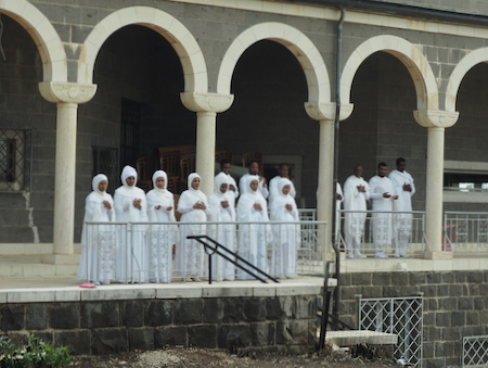 The next stop was at the site of the Sermon on the Mount - at the Church of the Beatitudes. The nine Beatitudes are written on stones on the walkway to the church. Of interest here was a large group of Ethiopian Coptic Christians singing and swaying and clapping and all dressed in white.
