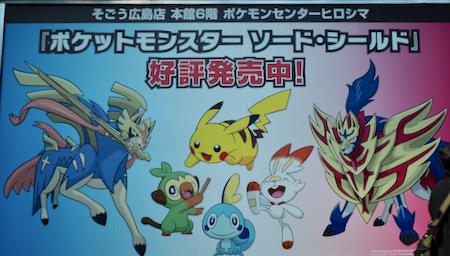 This cute sign says: A Pocket-Monster Sword Shield is now on sale