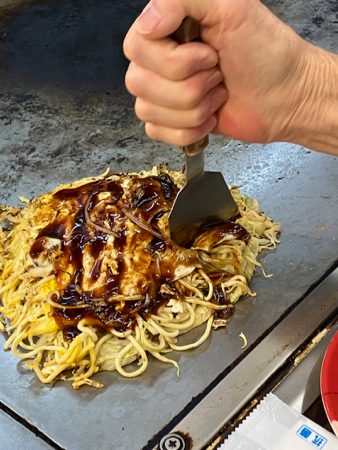 Cutting the Okonomiyaki