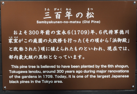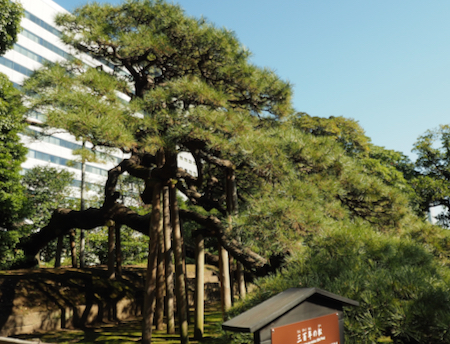 By the entrance/exit is a 300-year-old black pine tree with long branches held up with poles.