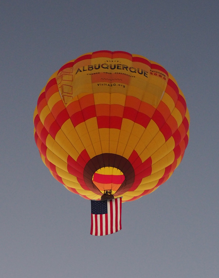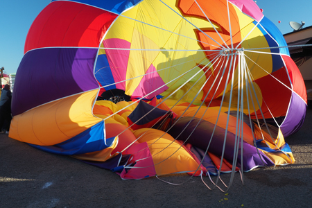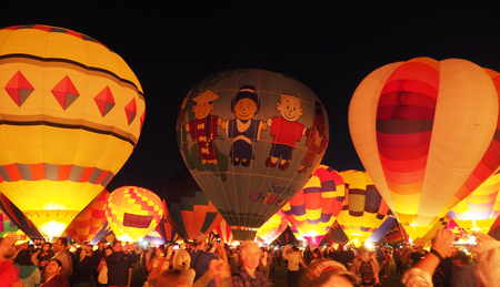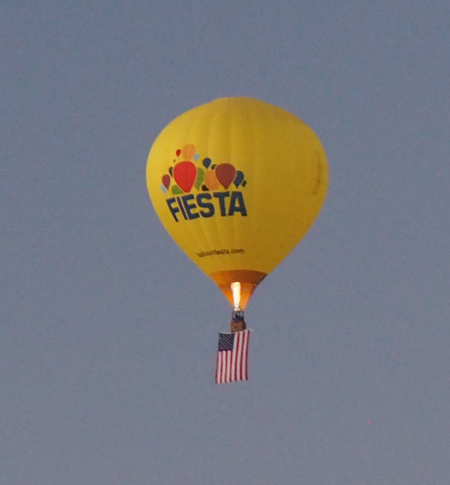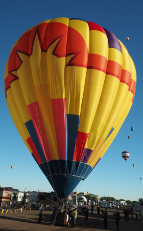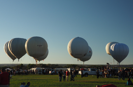 As part of the Fiesta, America's Challenge race for gas balloons is held. These balloons are inflated with hydrogen or helium (both very expensive and scarce) and the pilots fly to see who can go the greatest distance. This year's winners, from Switzerland, set a distance record of 3670.76km (2278.9 miles) before they landed two and a half days later near Labrador City, Canada. Web link.