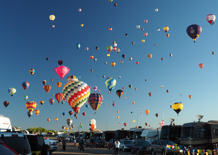 Between 7:00 and 9:00 AM, 450 to 500 balloons will ascend into the bright blue New Mexico sky. There just isn't anything quite like it.