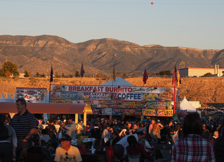 The days at the Balloon Fiesta are pretty much the same. In the morning you bus to the Balloon Field between 6:00 and 6:30AM to watch the morning mass ascensions. You are able to walk around the field among the balloons as they are being inflated. It is cold (40-45 degrees and damp) but so spectacular you wouldn't want to miss it. Between 7:00 and 9:00, 450 to 500 balloons will ascend into the bright blue New Mexico sky. There just isn't anything quite like it.