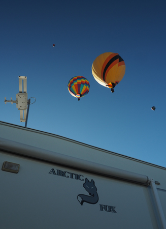One of the really great things about the RV campground at the Fiesta is that when the winds are right, many of the balloons either fly over the CG or even land amongst the rigs.