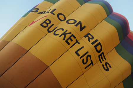 The RainbowRyders Balloon Company offers expensive "Bucket List" rides. There are 6-12 (usually) people in the basket and the length of the ride will depend on the weather/wind conditions. Very pricey way to reduce your bucket list!
