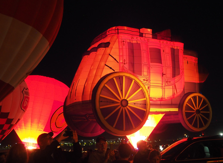 In the evening (6PM), you have the option to return to the Balloon Field for the Evening Glow show and fireworks. The Glow is when, on a signal, all the balloons fire off their burners simultaneously. It is beautiful!