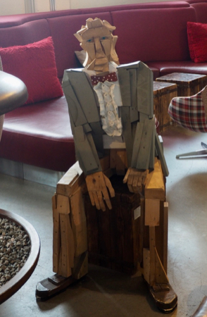 Permanent resident of the hotel lobby - there were many of these wooden figures all around Reykjavik