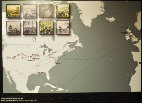 The museum contains another section presenting information about two Icelanders who went to Denmark to learn trades and met some Mormon proselytizers. They became Mormons (baptized in 1851), returned to Iceland, and worked to grow the church's membership in Iceland. Early church members were encouraged to emigrate to the US where they could have a lot of land and several wives. They sailed to NY and walked 3,000 miles to Utah. The group of 16 who left Iceland in 1855 arrived in Salt Lake City and Brigham Young sent them to settle in Spanish Forks, Utah. Several of them returned to Iceland. One of those brought a violin with him that he had learned to play in Utah. He walked back to NY carrying the instrument under his arm. The violin was on display in the museum when a Hungarian violinist visited, asked to play it, and then asked if he could rent it because the quality was so perfect. The museum owners decided on a contract requiring him to return to the Westman Islands twice a year and play the violin for school children. He has done that and will be back on Nov. 22 to play again.