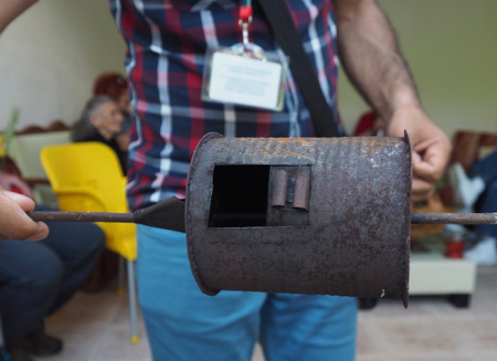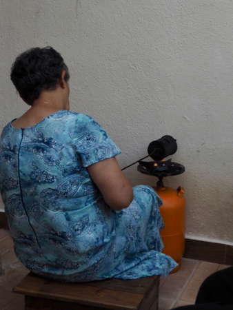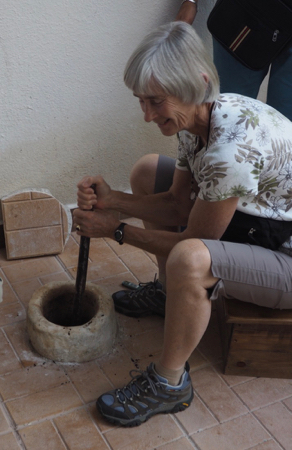 First the lady of the house showed us how they can roast raw coffee beans, then pound them into a fine grind. She made us the coffee with sugar or without.