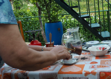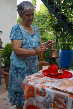 Around 5 PM we walked up the steep street to have Greek/Albanian/Turkish coffee and then have our coffee grounds read by an old lady.