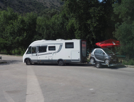We crossed the border into Albania without incident. Greece stamped our passports and Alexandra collected our passports and gave the Albanian officers “coffee” to bless our entrance without searching our luggage. Coffee is the term for bribery of one sort or another. We entered Albania at this southern crossing because the one most people use is often crowded. It is also full of trash along the Albanian roadsides because gypsies collect trash, sort what they want, and pitch the rest. Most of the trash is plastic.