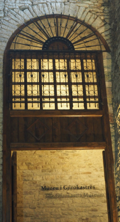 Gjirokaster (Silver Castle) is known for its 13th to 19th c. fortress (castle) located on a promontory of the White Mountains. We rode taxis up to the entrance and Gazzi led us on a 2 1/2 hour tour of the military fortress/castle/museum.We entered up a ramp covered by a very high arched ceiling. German and Italian cannons from WWII lined the route.