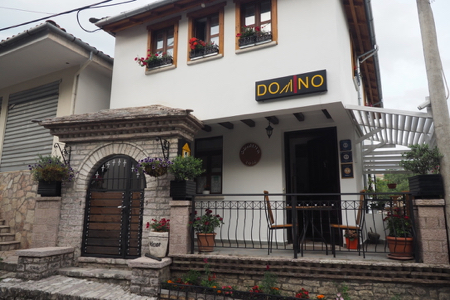 We arrived in Gjirokaster and our hotel, Argjiro. We are right in the old town and walked up rough cobblestones past souvenir shops, a tiny market, a pharmacy, etc. to dinner. We had the same Greek style meal - Greek salad with wonderful tomatoes, baked feta, tasteless bread, grilled veggies, fried potatoes, spicy beef, grilled chicken, and baklava for dessert.