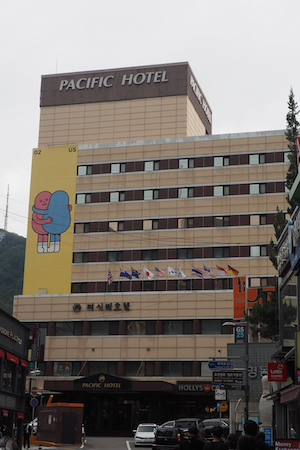 The taxi arrived at the Pacific Hotel in Myeong-dong at 7:15 PM. “Dinner” consisted of PB & J sandwiches from home - the sixth meal of whatever day it was. Bed-time was at 4 AM US time or 8:00 PM Seoul time.