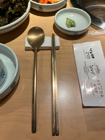 Notice that Korean chopsticks have flat sides, they are not roundBack at the hotel, we had about and hour and a half to dry out before going to our Welcome Dinner of Korean BBQ and Korean beer. We walked to the restaurant and back in the rain. Dinner was lots of little things and pork and beef cooked at our table. Gale had seaweed squares to wrap rice in and eat instead of the fish soup everyone else had. Everything was tasty.