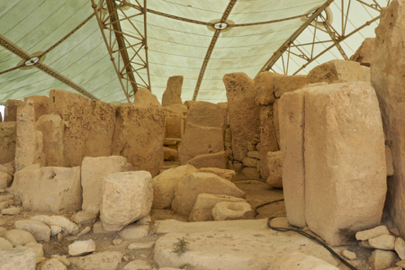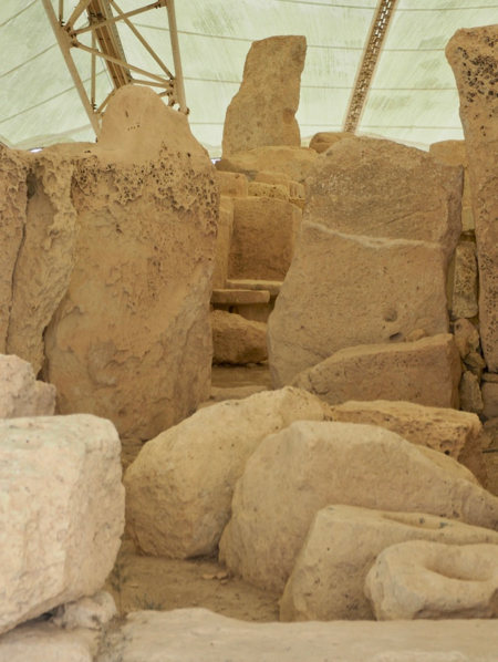 Hagar Qim is one of the “oldest free standing stone monuments in the world.” It was built between 3600 and 3000 BCE and is one of 24 standing stone temple ruins found on Malta. It is unlike anything elsewhere in the world and is one millennium older than Stonehenge and two millennia older than the pyramids. There is only speculation about how these were built or just what service they provided. We looked at a 10-minute 3-D movie about Hagar Qim and then walked around and through it. (See the link above for more detailed information.)