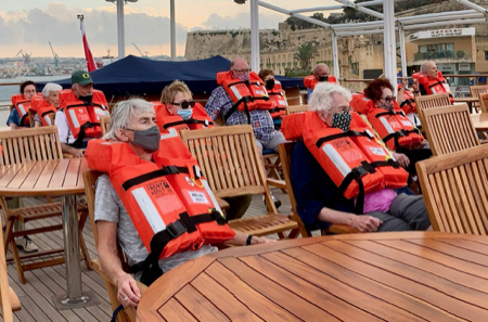 Our safety briefing was on the sun deck. The life preservers are as uncomfortable as they look!
