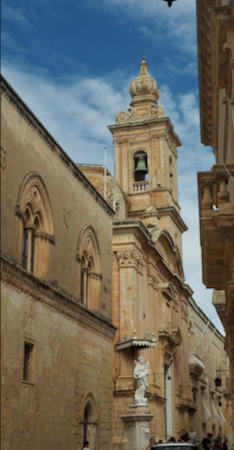 It was raining hard as we boarded our bus to visit the old city of Rabat and the old fortified hill town of Mdina in the middle of the island. Mdina has a long history from the time of the Knights of St. John in the mid-1500s through the bombings of WWII to the tourist attraction of today.