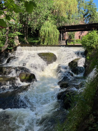 This morning, after an orientation session, the group rode a tram to a place where we could begin a walk down the “green” path along the Akerselva River. The river flows from a lake to the Oslo Fjord. There are rapids and waterfalls so it was an interesting walk.
