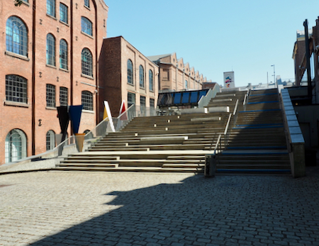 Long ago ship building and sail making factories were operating along the river. Other factories were built during the Industrial Revolution. Now there are apartments in the old factories and the University of Culture and Design (the Arts) occupies several large buildings.