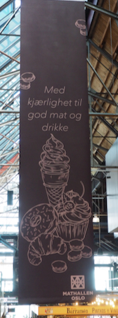 Our "urban hike" ended at the Mathallen Food Hall where we had half an hour to look around and perhaps choose something for lunch. Our leader "treated" us to a taste of Paradis licorice ice cream - two cups and a lot of spoons for the 24 of us. Two scoops cost $7.50!