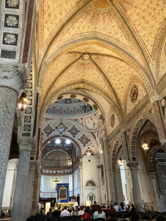 Today's excursion was to Milan, a city older than Rome and of Celtic origin. The streets are arranged in a circle around the center instead of along one horizontal and one vertical major street as Roman cities are. Milan is an economic center (fashion and culture) and is attempting to be a “green” city. It has a very high cost of living.
