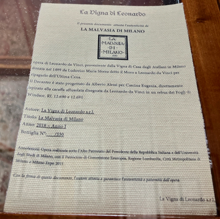 The rose garden and small vineyard behind the Casa were a place of respite from the bustling city. The garden was completely destroyed in 1943 when Milan was bombed. Fortunately 23 burned out roots from the vines were found and their DNA was analyzed and scientists were able to reproduce Leonardo’s grapes. New roots were planted in 2007 and by 2015 grapes were appearing. Last year 100 bottles of wine resulted from the harvest. The bottles were auctioned for 1,000 to 3,000 Euros each and the profits donated to the research on childhood genetic diseases - a nice connection.