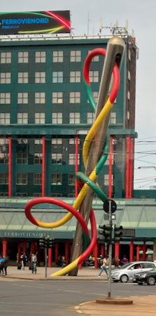 Needle, Thread, and Knot sculpture by Claes Oldenburg and Coosje van Bruggen in Piazzale Cadorna