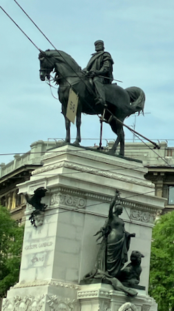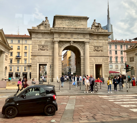 A short bus tour of Milan took us past the sculpture: Needle, Thread, Knot - symbols of the Milan fashion industry, a statue of Garibaldi on a horse in front of a tower of the Sforza castle, and past several of the old gates (porta) around the inner circle road of old Milan.