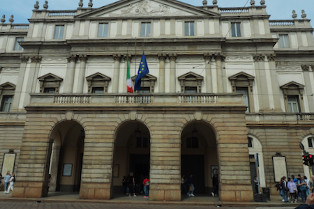 Teatro alla La Scala, arguably the most famous opera house in the world. The opera house experienced a direct hit from a WWII bomb in 1943 and was the first community building rebuilt after the war.