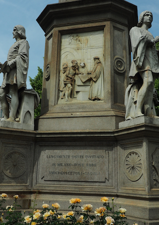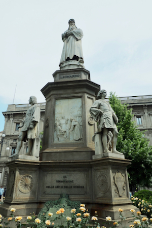 The square across the street has a nice statue of Leonardo Da Vinci with statues of four of his students at the corners and bas reliefs of four of his major projects.