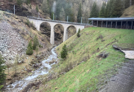 Our train on the Brusio Spiral Viaduct