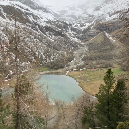The rail route goes past the town of Miralago on the southern shore of Lake Poschiavo. The lake water is a cold 36°F - not tempting for swimming. There is also a station at La Prese on the northern shore of Lake Poschiavo. This area is known as the kingdom of the “Herb King” because numerous organic herbs and flowers are grown here as are the herbs found in Ricola cough drops and lozenges.