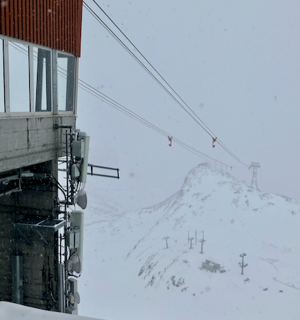 Arriving at the cable car station at Bernina Diavolezza