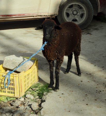 The farm produces olives and pomegranates and has chickens and two horses. There was no farm activity and the green house was empty because water use is restricted because of insufficient rain.On the way to the farm, we went to the town market, bought slices of turkey for our lunch and then sat and did nothing until we ate. Three people got to make Fatima fingers (like “brick” but rolled up), and two got to peel peppers and tomatoes that were to be grilled. Bread was brought out and we were to tear off pieces and dip it in their olive oil. All this was done with no one washing hands and people actually bit into bread and re-dipped the bread in the common plate of oil. No thank you.