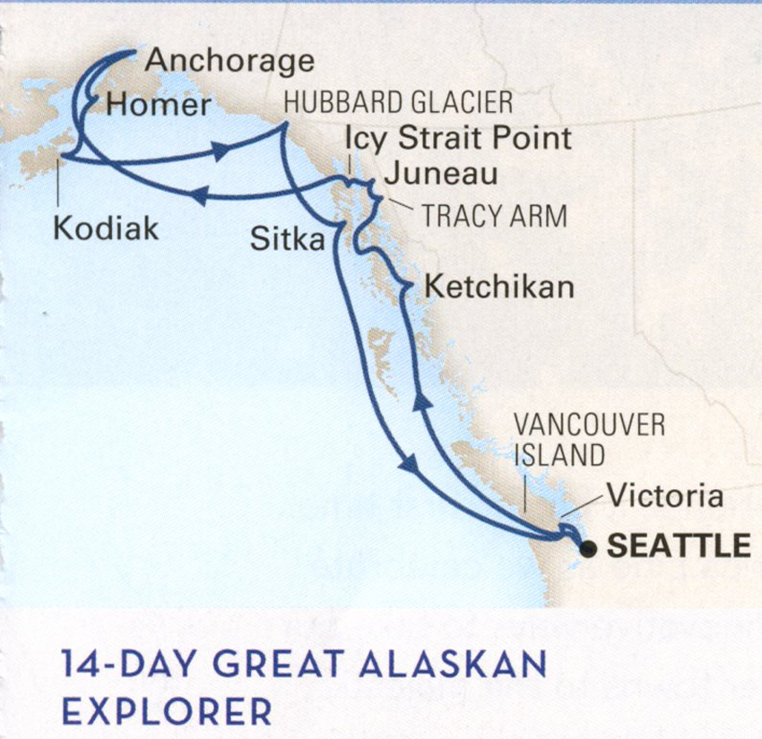 Map of our cruise. We went to the Endicott Arm instead of the Tracy Arm because of too much ice.