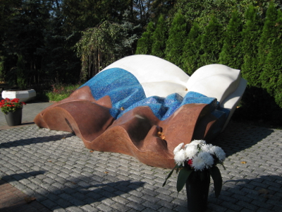 Our next stop was at the Novodevichy Cemetery with 267 tombs of rich or famous Russians. Nicolai gave us a Russian history lesson as he walked us to several graves and told us about the person buried there although some of the people were unfamiliar to me. Boris Yeltsin’s grave has a headstone like a waving white, blue, and red Russian flag. Many Russians do not love Yeltsin. The wife of Gorbachev (Raisa) is there and there is room for him. She was the first First Lady to be visable to citizens and foreigners and accompanied Mikhail at state functions. Tupolev made Russian airplanes; Gleb Kotelnikov was the inventor of knapsack parachutes. Khrushchev is buried here and is also not a Russian favorite. He and Kennedy conflicted over the Cuban missile crisis and he visited the US and returned to Russia with the idea to plant corn in the country instead of wheat and rye. Corn will not grow in this environment and many people starved as a result of his directive. Khrushchev’s son still lives in Florida. The graves of opera singers, writers, and actors were pointed out to us. Several graves had orange and black ribbons, which are symbols of pro-Russian military. I saw one grave with a volleyball etched on it!