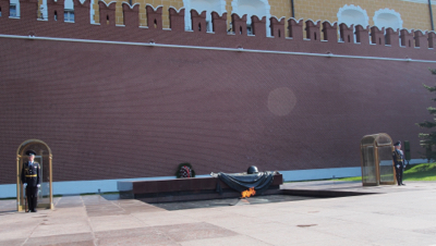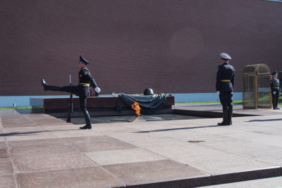 After lunch we met the group at in front of the Tomb of the Unknown Soldier – the remains are of a soldier killed in 1941 in the first Russian battle of WWII – and waited for the 1 PM changing of the guard. Right on time, three soldiers goose-stepped to the tomb and smartly changed positions. The precision was perfect. The guards stand still and only move their eyes for one hour.