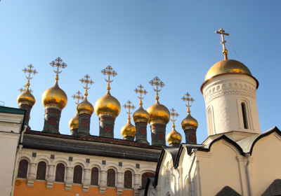 Next we entered the Cathedral Square with three churches: Cathedral of the Assumption (or Dormition), built in the 13th c. and where the crowning of the tsars ceremonies took place; the Cathedral of the Archangel Michael, where the tombs of tsars up to Peter the Great are located (there are 60 tombs of tsars and male relatives); and the Cathedral of the Annunciation, which was the private church of the tsars and only holds 25 people. The fourth building is the Ivan the Great Bell Tower. We went inside the two large churches (no photos).