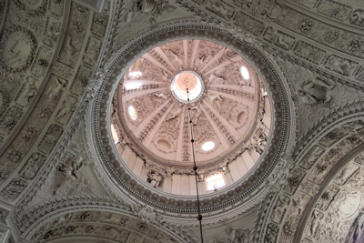 We ended our city tour stroll at the Town Hall Square where we got on our bus for the short ride to the Church of Peter and Paul. Inside the church are 2,000 stucco statues and the whole interior is white. Before the altar is a unique chandelier in the shape of a ship. The ship that was bringing the altar painting from the Pope in Rome sank and the ship chandelier is in memory of that sunken ship.