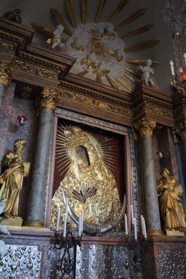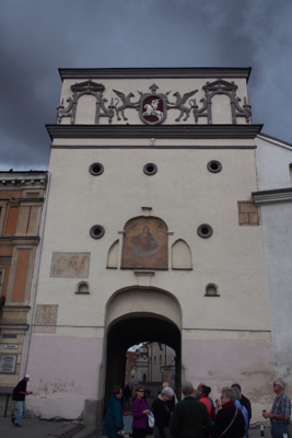 Our last stop was at the Gates of Dawn. It is the only one of the 10 gates of the old city wall that remains intact. On the outside is a fresco of Jesus the Savior of the World and above the gate is the Chapel of the Blessed Mary. You can see the gold Madonna from the street below and people once walked on their knees to pass below her. We went up to the chapel to see the gold Madonna.
