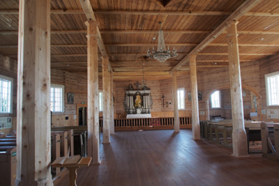 Next we stopped at a reconstructed village with a cobblestone square, RC Church, schoolhouse, bar, hardware store, craftsmen, and stable with 20th c. carriages. The church was particularly interesting because it was mostly undecorated but with an attractive timber construction.