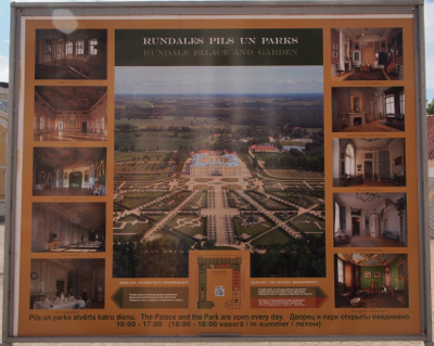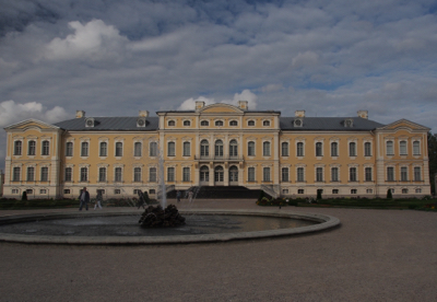 We entered Latvia at 2:10 PM and drove on to the 18th c. Summer Palace of the Duke of Courland and the Rundale Palace Museum. The palace was presented to the Prussian dukes by Tsarina Anna and later Catherine the Great. The same architect who built Peterof, the Catherine Palace, and the Hermitage in Russia built it. It is huge and elaborate with formal gardens with fountains and an amphitheater and 10,000 rosebushes including 3,000 varieties. We entered the palace with a museum guide and walked through the Reception Halls and Ballroom then through the duke’s residence wing and last, through the wing of the duchess’s residence (no photos allowed).