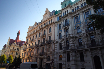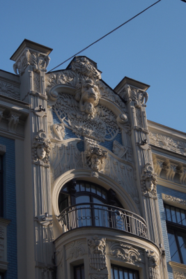 We then had a walking tour of Riga. Riga is known as the Capital of Art Nouveau. We walked around a neighborhood with the “crazy, beautiful” façades. Each building seemed to try to outdo their neighbor. The architect, Mikhail Eisenstein, designed many of the houses before WWI. We looked at five in a row of these houses. Each had modern and expensive five or six bedroom apartments.