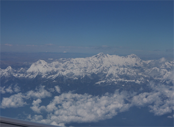 We were fortunate enough to have a flight with extra seats. Plus, even though we were on the "wrong" side of the plane, everyone took turns at the windows so everyone else could get pictures of the Himalayas and Mt. Everest.