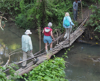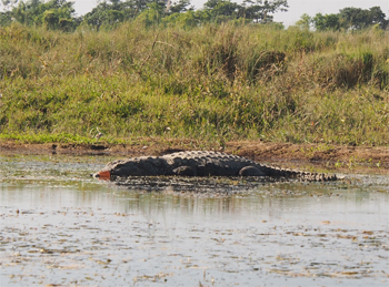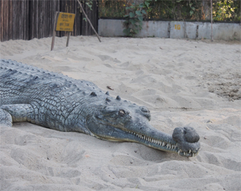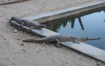 On the trail through the jungle from the river to the Gharial Crocodile Conservation Park, we saw paw tracks of a large tiger and his claw marks on a tree, and the holes a sloth bear had made digging for ants or termites. The conservationists for the breeding program of the Gharial crocodiles learned how to hatch the eggs and care for the reptiles until they are seven years old and able to be released back into this river or other rivers. The population dropped to about 200 because humans, monitor lizards, and birds took their eggs. The program is successful and will help maintain the balance of nature.
