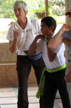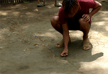 We walked around the little community and watched five boys playing marbles. They used a shooter to hit the marbles off a line drawn in the dirt rather than out of a circle as we did as kids. We ate the lunch they provided for us - beans and rice, a slice of tomato and lettuce, and beef with squash served on a banana leaf. We had watermelon for dessert.